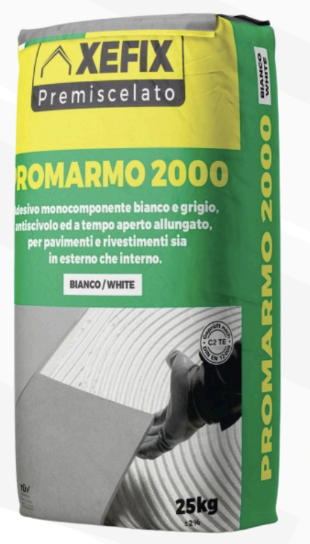 ADESIVO MONOCOMPONENTE BIANCO E GRIGIO, ANTISCIVOLO ED A TEMPO APERTO ALLUNGATO, PER PAVIMENTI E RIVESTIMENTI SIA IN ESTERNO CHE INTERNO.